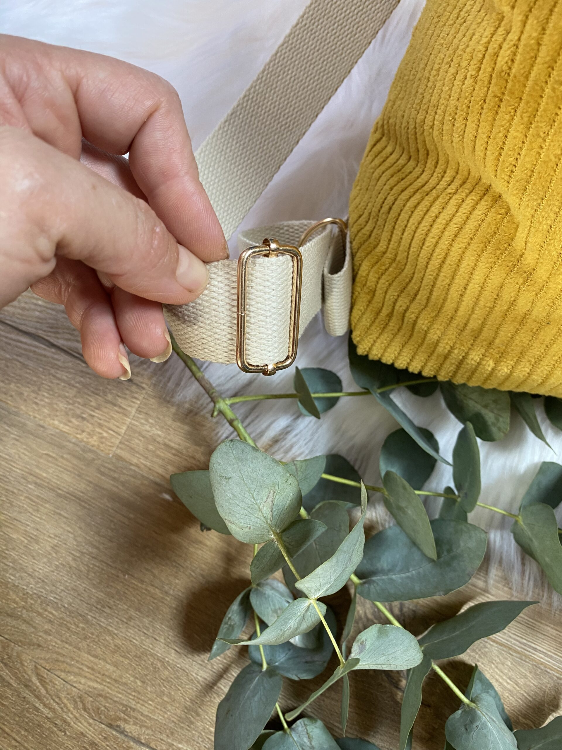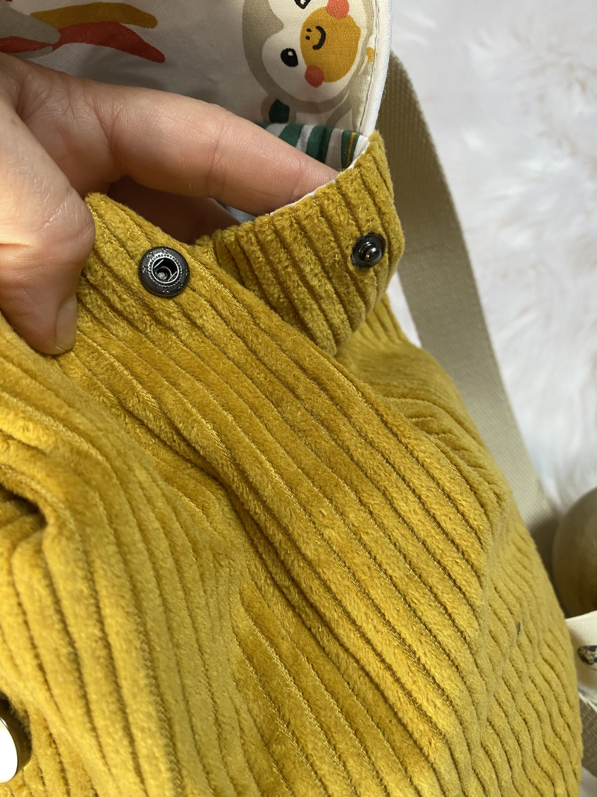 Ce petit sac à dos est une véritable invitation à l’aventure ! Confectionné en velours de coton jaune lumineux, il apporte une touche de soleil à toutes les sorties.