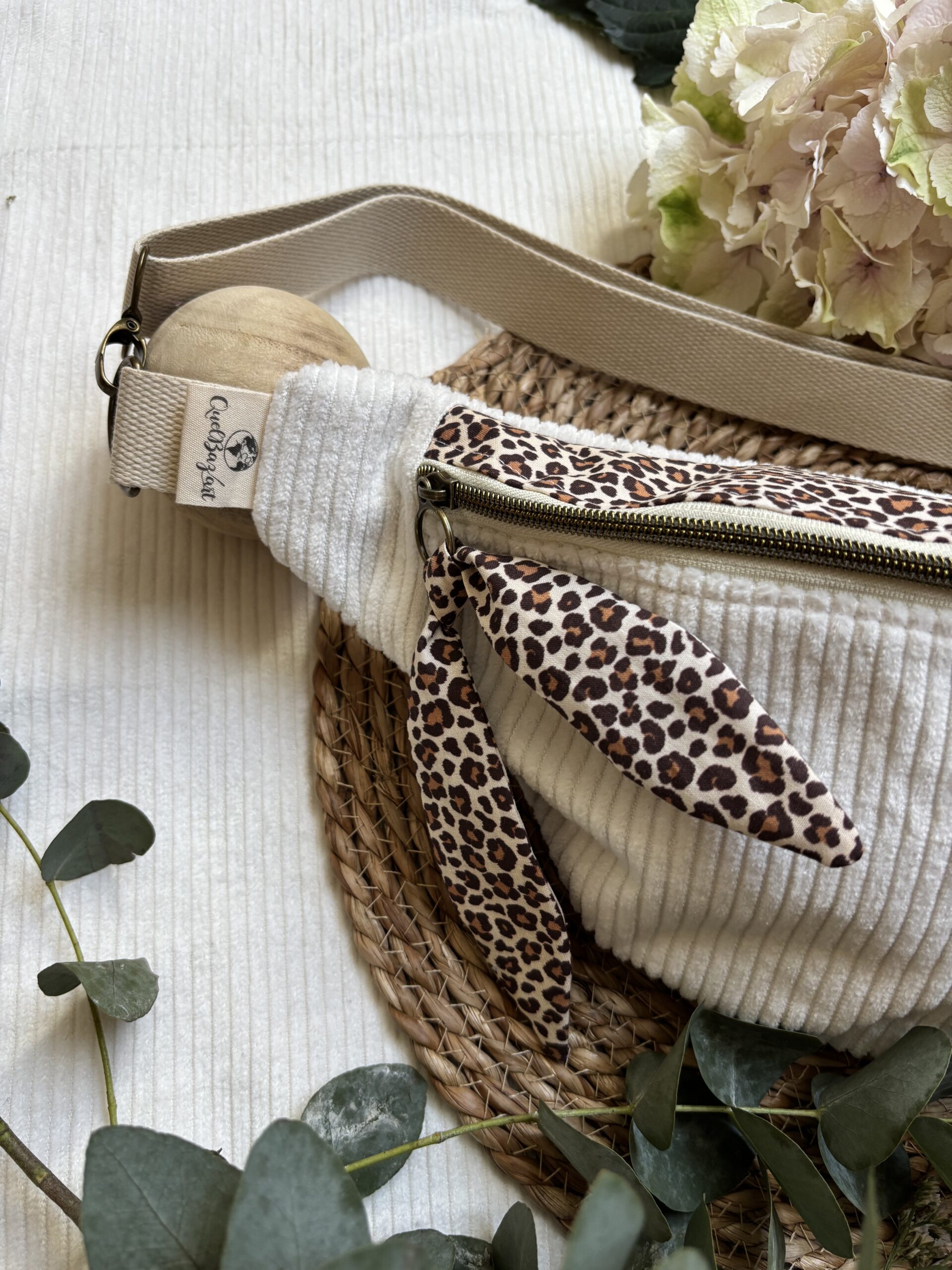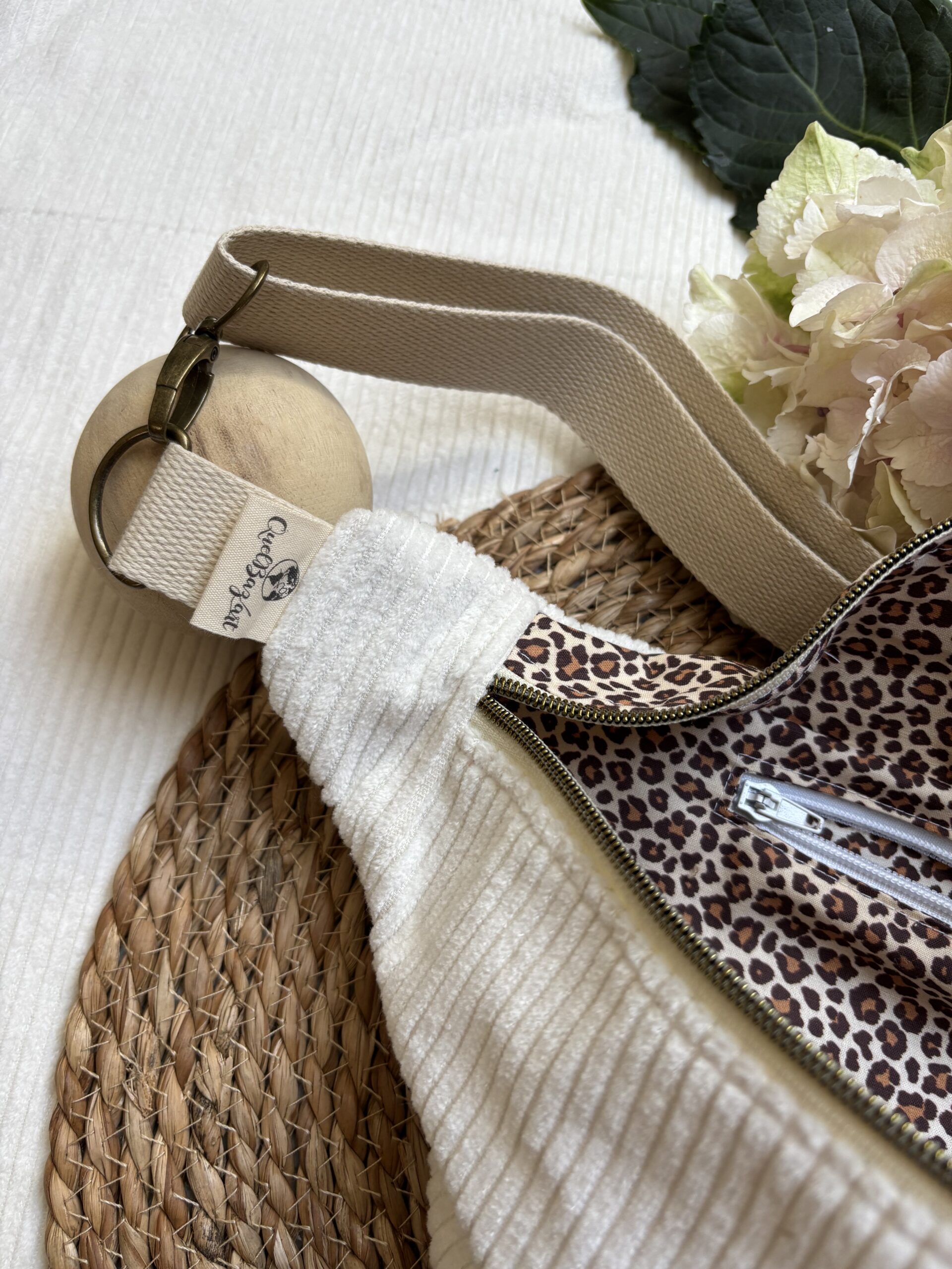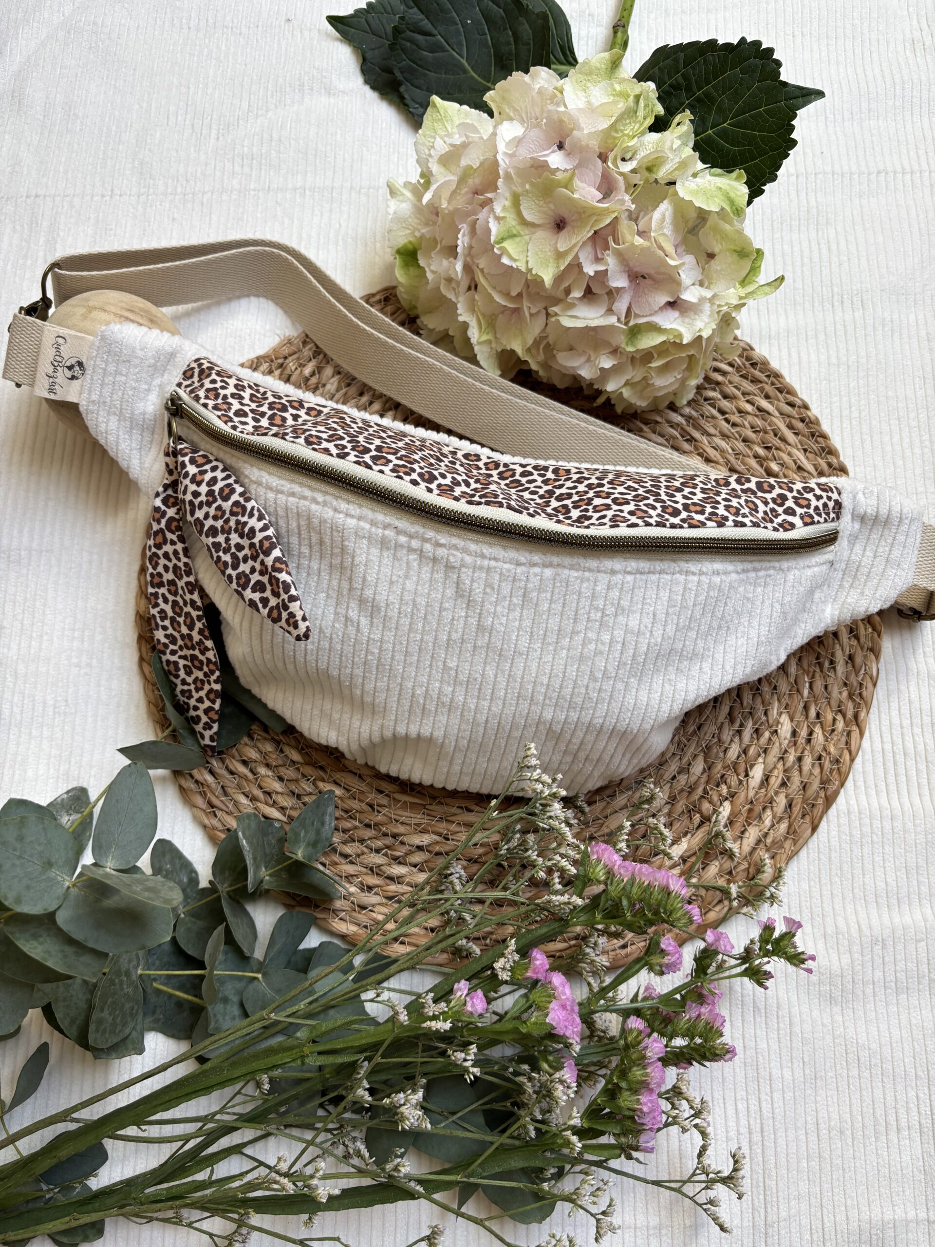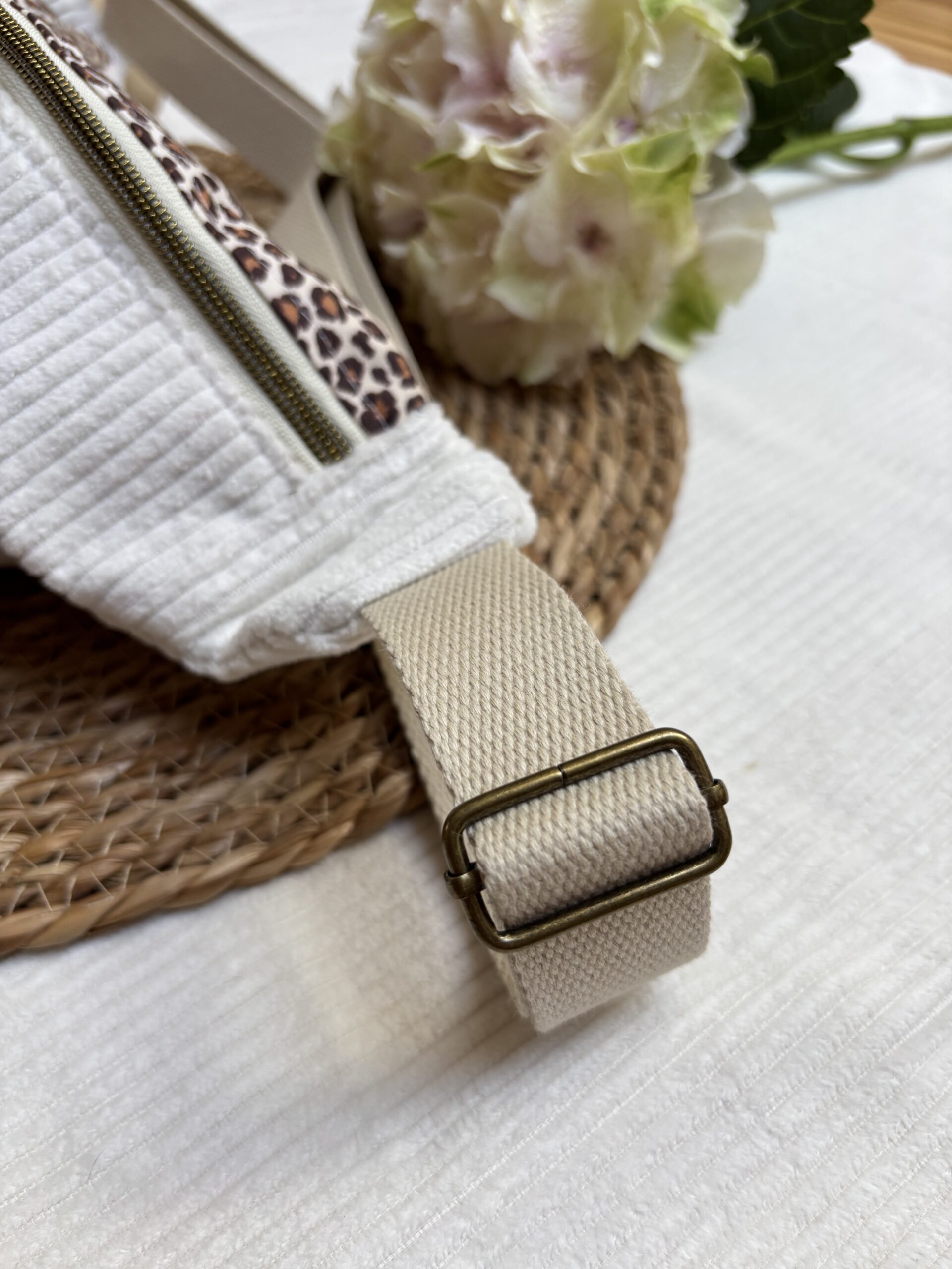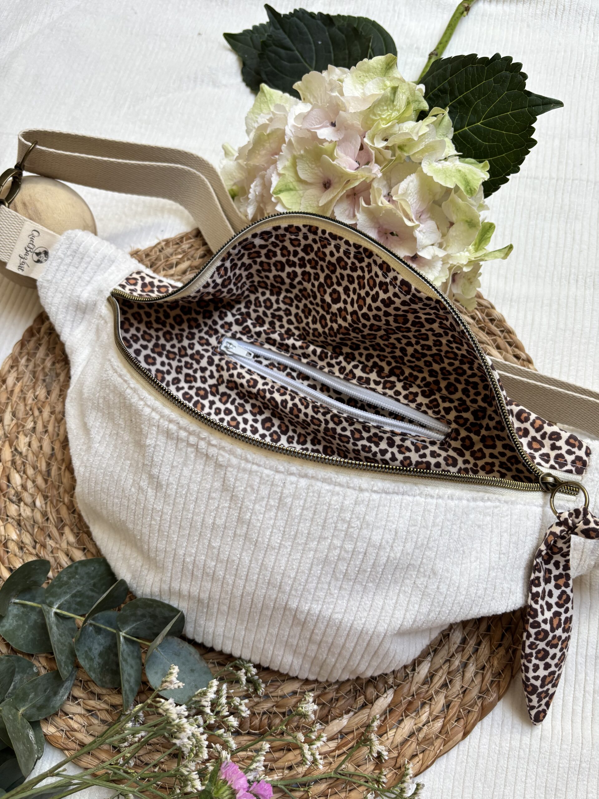 Le sac banane est confectionné en velours côtelé 100% coton labellisé Oeko-tex, associé à un 100% coton imprimé également labellisé.